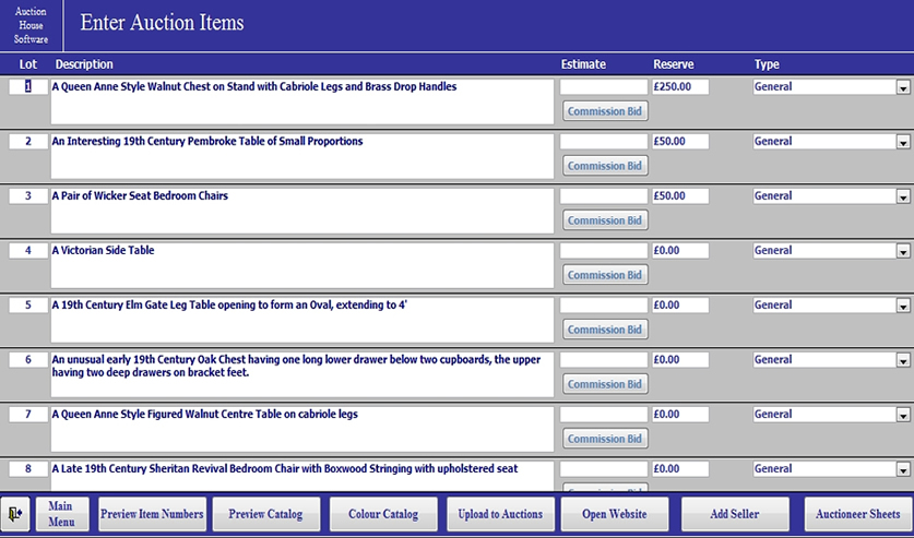 Enter the Hammer Price and the Buyer Paddle Number. Auction totals and commissions worked out automatically.